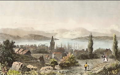 Allemagne. Gravure sur acier. 1851. Très bon état. Bordure décorative. Aquarellée à la main. 19x14cm. Montée sous passe-partout.