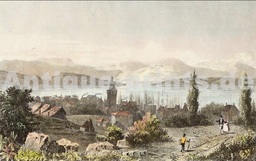 Allemagne. Gravure sur acier par Lemaître. 1844. Très bon état. Aquarellée à la main. 13,5x9cm. Montée sous passe-partout.