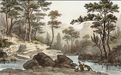 Allemagne. Gravure sur acier, gravée par E. Wagner d´après C. A. Lill. Vers 1840. Legères salissures dans la marge inférieure. Aquarellée à la main. 14,5x10cm. Montée sous passe-partout.
