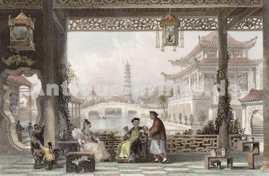 China. Original steel engraving drawn by T. Allom, engraved by A. Willmore. 1843. Very good condition. Hand-coloured. 19x12cm. Matted.