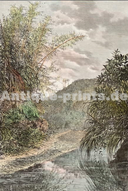 India. Original steel engraving by Lemaître. 1845. Very good condition. Hand-coloured. 14x9cm. Matted.
