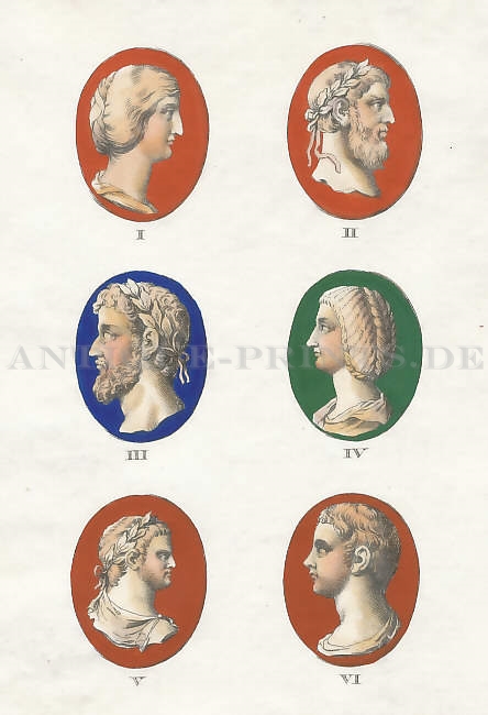 I. L. Verus César, II. Lucille Auguste, III-IV. M. Aurèle Commode (sic), V. Crispine Auguste, V. Crispine, VI. L´Empereur M. Didius Sever. Juli. (Cornaline, Jaspe rouge, Béryl).