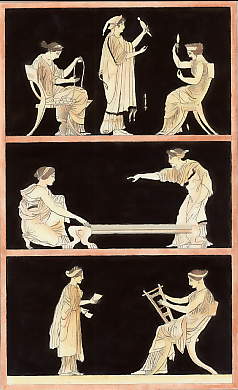 Anakreons Oden. Strichradierung von H. G. Chatillon nach A.-L. Girodet. 1825. Sehr guter Zustand. Handkoloriert. 17,5x14,5cm. Mit Passepartout.