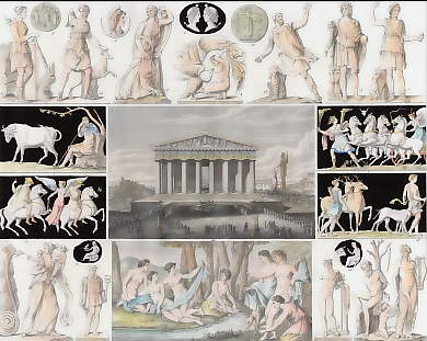 Altes Grienchenland. Kupferstich gezeichnet und gestochen von Tommaso Piroli. 1804. Leicht stockfleckig. Handkoloriert. 15,5x11cm. Mit Passepartout.