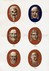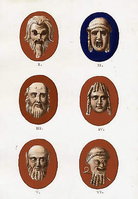 I. Masque de satyre, II. Masque tragique de femme, III. Masque d´un vieillard à visage paisible, IV. Masque comique de femme, V. Masque satyrique, VI. Masque de faune.