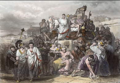 France. Original aquatinta and etching, engraved by Hirchenhein nach Winterlin. ca 1830-1840. Slightly soiled in the lower margin. Hand-coloured. 20,5x15,5cm. Matted.