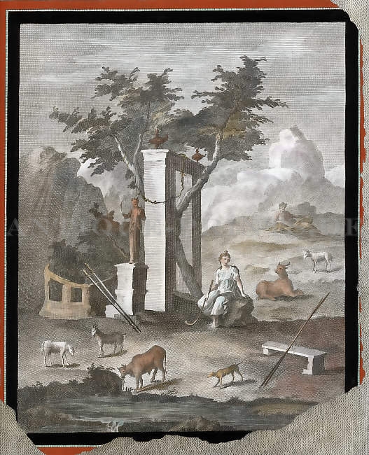 Herculaneum. Kupferstich von F. Cepparoli nach G. Morghen. 1765. Sehr guter Zustand. Kein Titel. Handkoloriert. 32x23,5cm.
