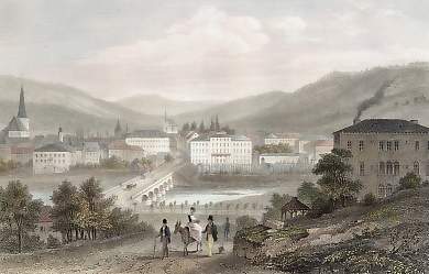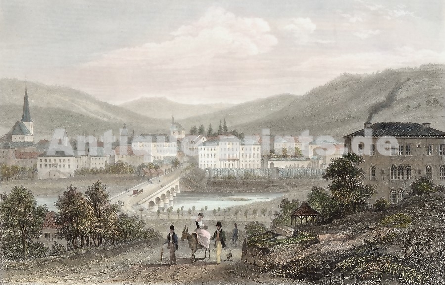 Germany. Original steel engraving drawn by Ainmüller, engraved by J. Poppel. 1843. Very good condition. Hand-coloured. 16x10,5cm. Mounted.