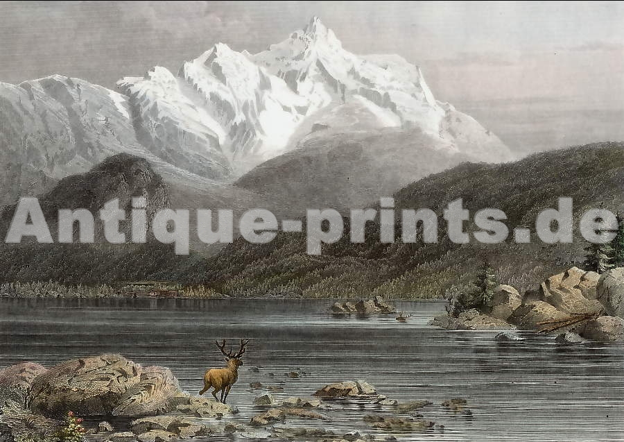 . Stahlstich gezeichnet von P. Ahrens. Institut in Hidlburghausen. 1864. Sehr guter Zustand. Handkoloriert. 16,5x11,5cm. Mit Passepartout.
