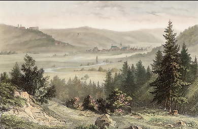 France. Original steel engraving drawn by J. M. W. Turner, engraved by J. T. Willmore. 1837. Very good condition. Hand-coloured. 13,5x10cm. Matted.