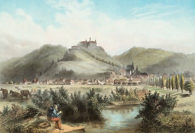 Germany. Original steel engraving, engraved by J. Huguenet after Lemaître. 1838. Very good condition. Hand-coloured. 14x9cm. Matted.