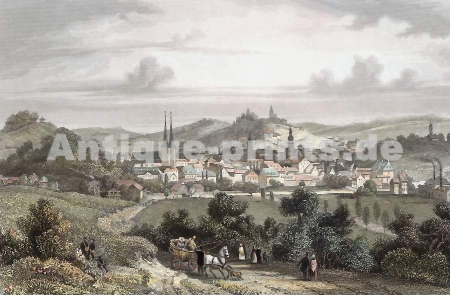Tschechien. Lithographie von C. W. Arldt, gedruckt von F. Weider. 1845. Sehr guter Zustand. Handkoloriert. 22x14,5cm. Mit Passepartout.