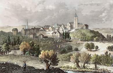 Germany. Original steel engraving, engraved by C. Mayer after Fr. Krüger. 1854. Very good condition. Hand-coloured. 7x5,5cm. Matted.