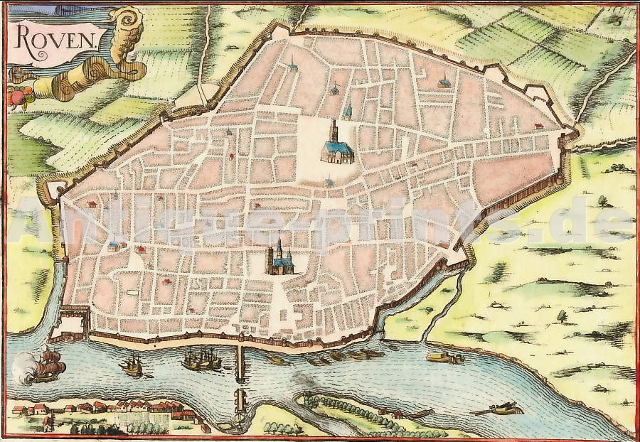 France. Original steel engraving drawn by C. Stanfield and J. Cousen. 1834. Good condition. Hand-coloured. 13,7x9,5cm. Matted.