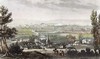 Herculaneum. Original copper engraving, engraved by F. Sesone after Casanova. 1765. Light foxing. Printed on the reverse side. Hand-coloured (watercolour and gouache). 22x7cm. Matted.
