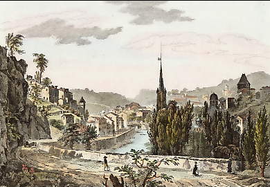 France. Original steel engraving drawn by W. Turner, engraved by J. B. Allen. 1835. Very good condition. Hand-coloured. 13,5x9,5cm. Matted.