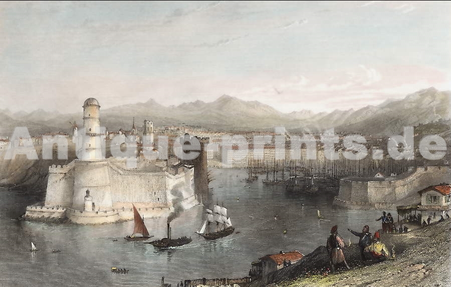 France. Original steel engraving drawn by A. Rouargue, engraved by E. Willmann. 1865. Very good condition. Modern hand colouring. 17x11cm. Matted.