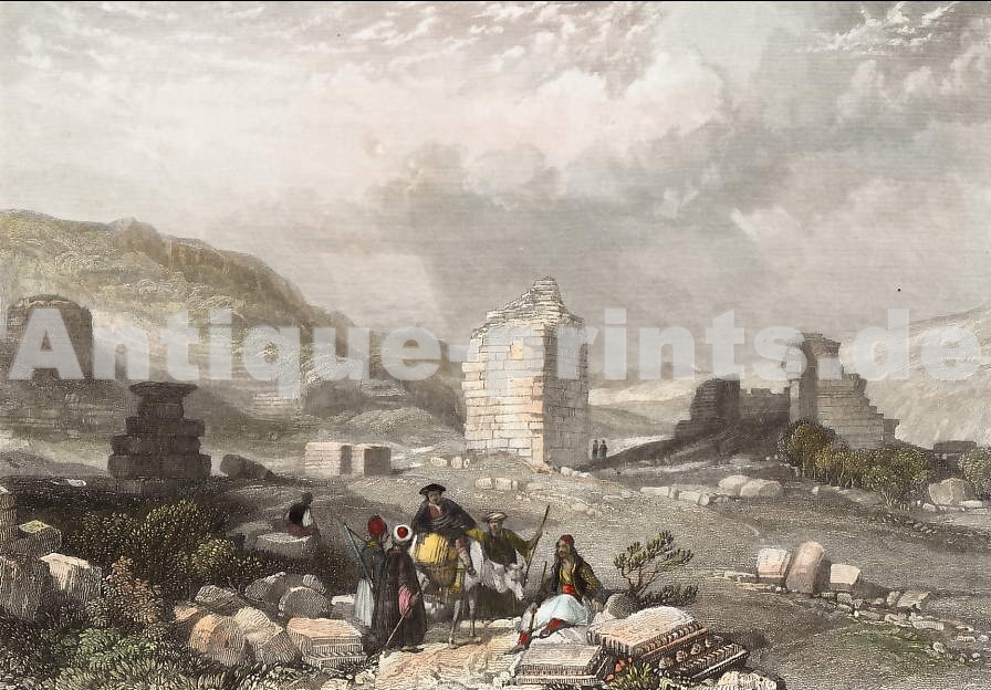 India. Original steel engraving, engraved by W. J. Cooke after W. Daniell. 1834. No title on the plate. Good condition. Hand-coloured. 14,5x10cm. Matted.