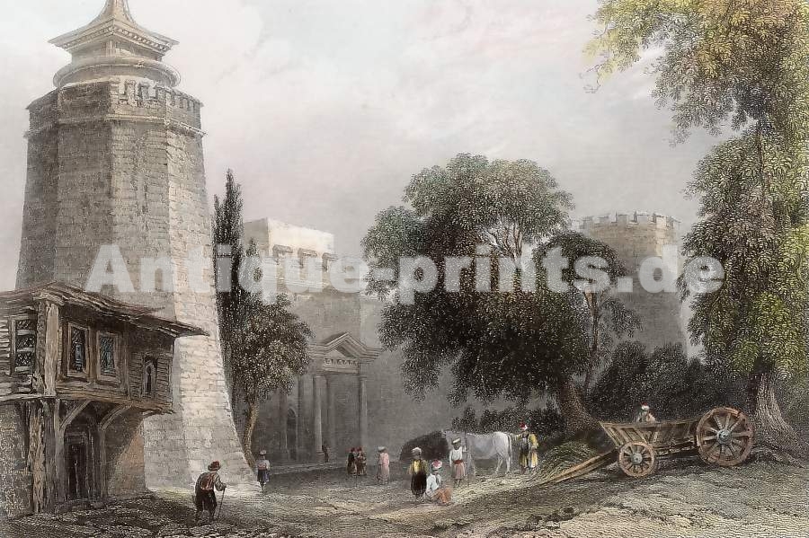 India. Original steel engraving drawn by T. Allom, engraved by T. Higham. 1833. Very good condition. Hand-coloured. 18,5x11,5cm. Matted.