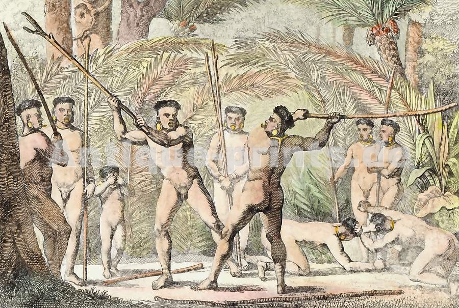 India. Original steel engraving drawn and engraved by J. Schroeder. 1859. Good condition. Hand-coloured. 15x10,5cm. Matted.