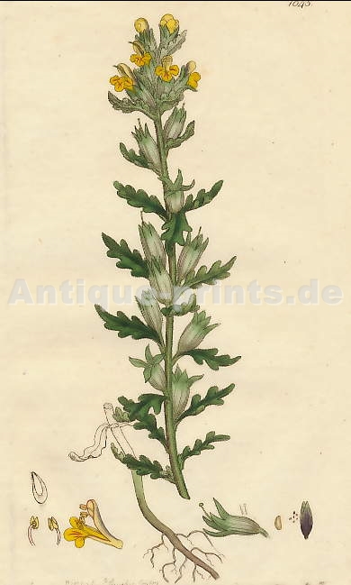 Plates, Engraving, Stiche, Gravure, Pflanzen, Plantes, Plants, Botanic, Botanik, Botanique, Eufragia Viscosa, Parentucellia Viscosa, Bartsie Visqueuse, Yellow Bartsia, Drüsiger Zahntrost, Yellow Glandweed
