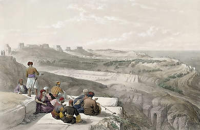 Holy Land. Original steel engraving drawn by J. D. Harding after Bracebridge, engraved by Ransonnette. 1837. Good condition. Hand-coloured. 14,5x10cm. Matted.
