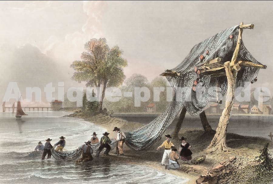Marquesas Islands. Original steel engraving, engraved by De Villiers. 1844. Good condition. Original hand-colouring. 16,5x13,5cm. Matted.