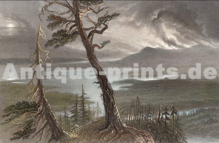 Sweden. Original steel engraving. 1838. Hand-coloured. 16x8,5cm. Matted.