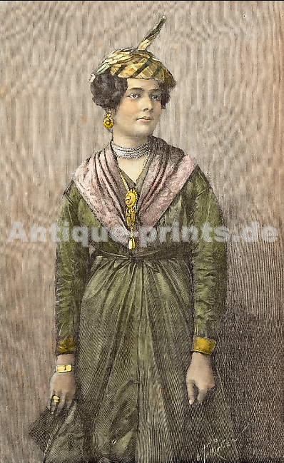 Martinique. Holzstich gestochen von H. Thiriat. 1891. Guter Zustand. In-Text, Text auf der Rückseite. Handkoloriert. 15,5x9,5cm. Mit Passepartout.