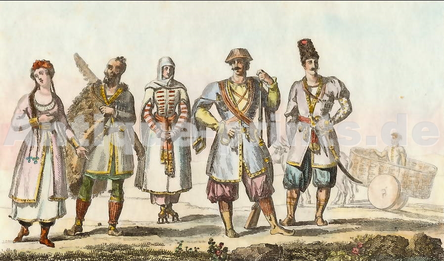 Varia. Gravure sur acier. ca 1850. Légères rousseurs dans les marges. Aquarellée à la main. 16x13cm. Montée sous passe-partout.