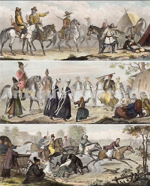 Algeria. Original steel engraving, engraved by Chavanne after E. H. Girardet. 1840. Very good condition. Hand-coloured. 19x14cm. Matted.