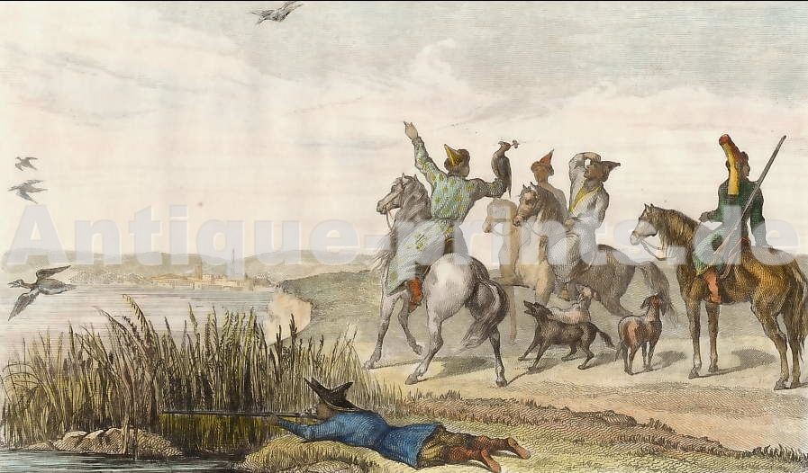 Brazil. Original steel engraving, engraved by Alès after Vanderburch. 1838. Very good condition. Hand-coloured. 13,5x9cm. Matted.