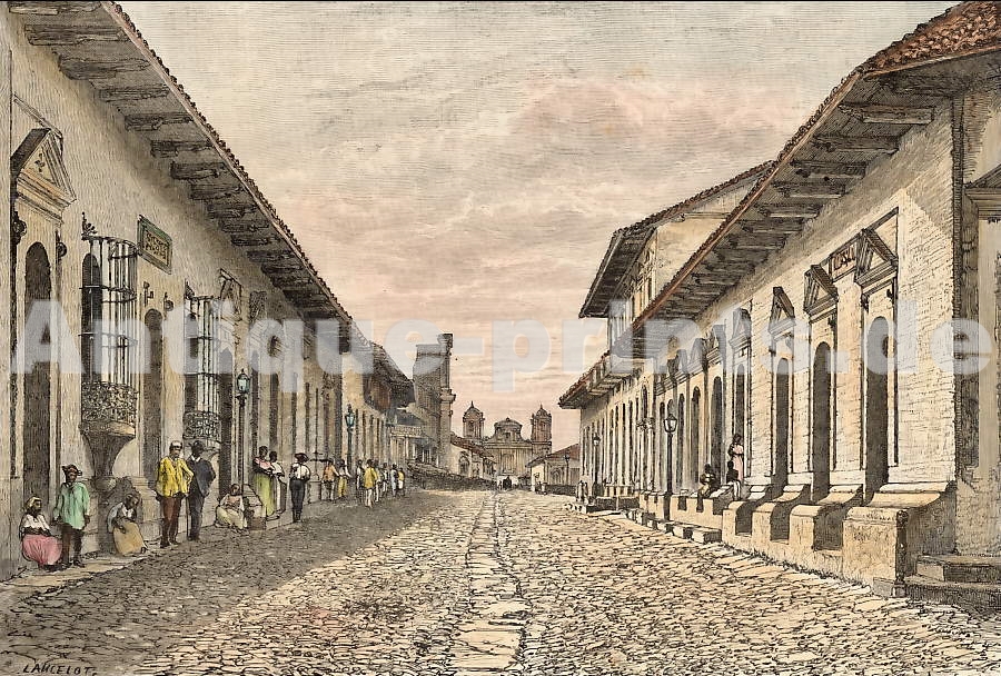 Columbia. Original wood engraving by H. Thiriat. 1894. Good condition. 18,5x12,5cm. Matted.
