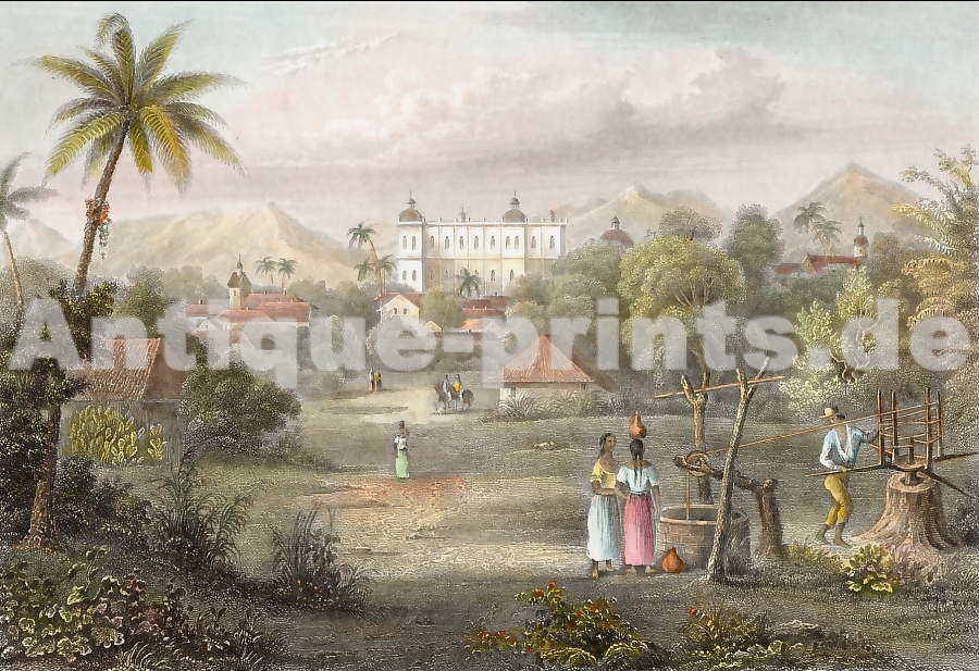 Italy. Original steel engraving, engraved by H. Jordan after S. Prout. 1830. Very good condition. Hand-coloured. 14x9,5cm. Matted.
