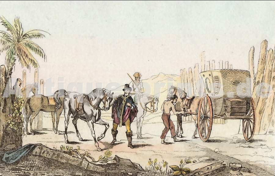 Guyane française. Gravure sur acier, gravée par Bocourd d´après Goury. 1841. Très bon état. Aquarellée à la main. 22,5x14,5cm. Montée sous passe-partout.