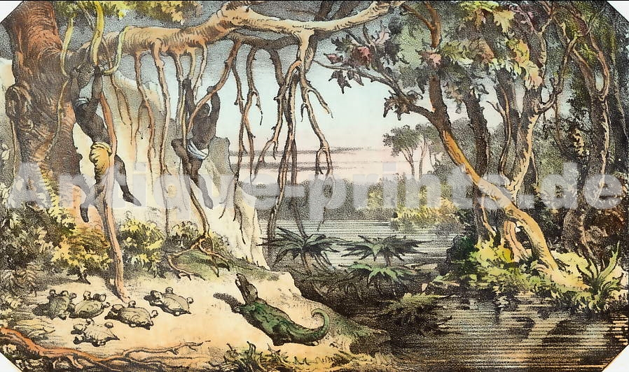 Nicaragua. Gravure sur bois, gravée par Delbosque d´après Lancelot. 1878. Légères rousseurs. Aquarellée à la main. 19x13cm. Montée sous passe-partout.