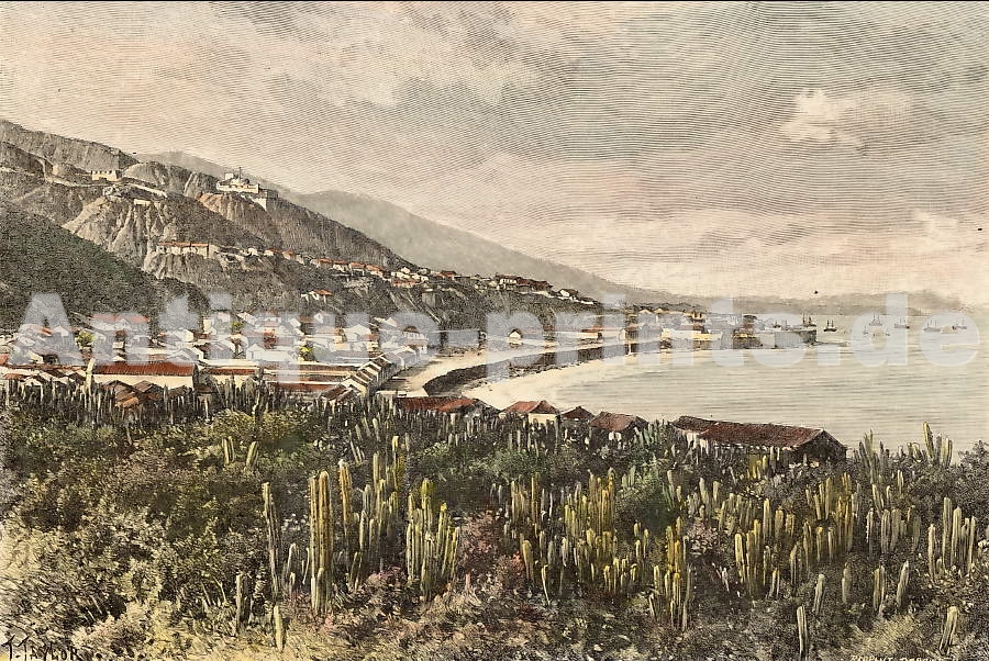 Russia. Original tinted lithograph by E. Ciceri after Admiral E. Paris, figures by A. Bayot. 1857. Soiled and stains in the margins. Hand-coloured. 46,5x31cm.