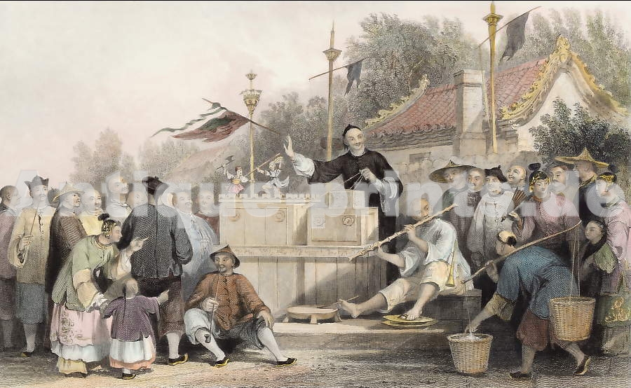 Océanie. Gravure sur acier, gravée par Taillant d´après Demoraine. 1859. Très bon état. Aquarellée à la main. 15x9,5cm. Montée sous passe-partout.