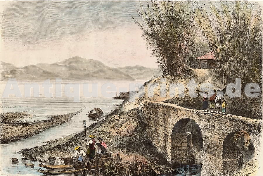 Terre sainte. Gravure sur acier, gravée par J. C. Bentley d´après W. H. Bartlett. ca 1850. Bon état. Aquarellée à la main. 18x12cm. Montée sous passe-partout.