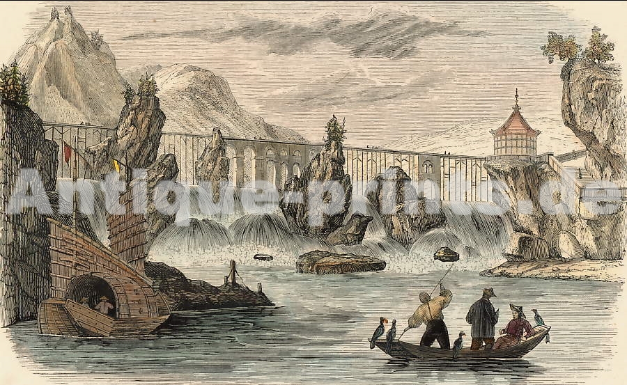 Chine. Gravure sur acier, gravée par A. H. Payne d´après C. Graham. ca 1840. Légères rousseurs dans les marges. Aquarellage ancien. 16,5x11cm. Montée sous passe-partout.