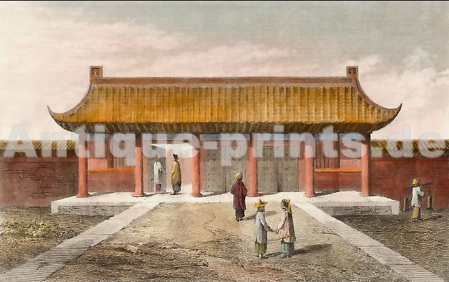 Vietnam. Aquatinte originale gravée par A. Bernieri. 1824. Bon état. Aquarellage d´époque. 16,5x11cm. Montée sous passe-partout.