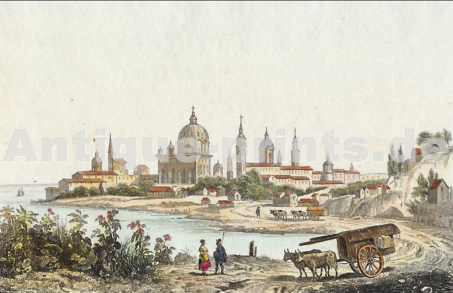 Kirghizistan. Gravure sur acier, gravée par Chaillot d´après Vernier. 1838. Très bon état. Aquarellée à la main. 14x8,5cm. Montée sous passe-partout.