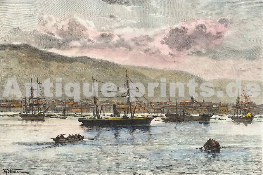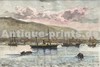 Marine. Gravure sur acier, gravée par H. Guesnu d´après A. Morel Fatio. 1844. Bon état. Aquarellée à la main. 15x9cm. Montée sous passe-partout.