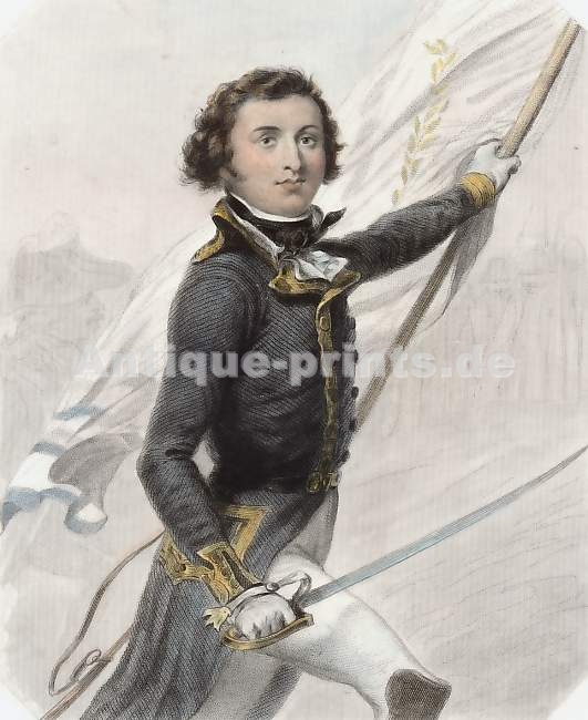 France. Gravure sur acier, gravée par Hopwood d´après Raffet. 1847. Très bon état. Aquarellée à la main. 12x10cm. Montée sous passe-partout.