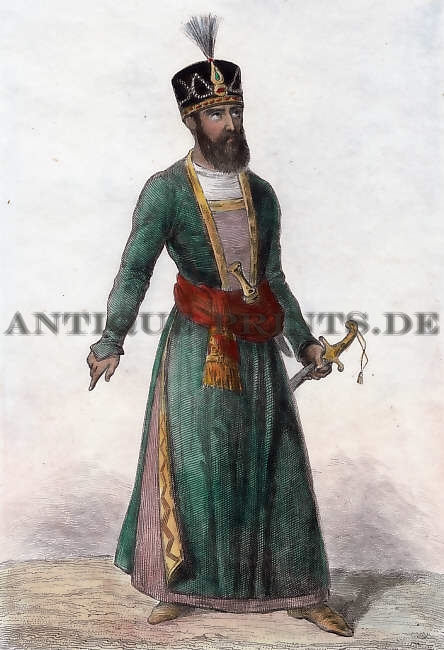 Turquie. Gravure sur acier (Strahlheim). 1837. Bon état. Aquarellée à la main. 13,5x8,5cm. Montée sous passe-partout.