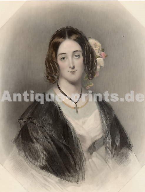 England. Original steel engraving, engraved by D. J. Pound after a photograph by J. Mayall. 1867. Very good condition. Hand-coloured. 21x17cm. Matted.