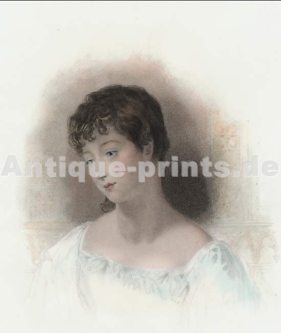 Angleterre. Gravure sur acier, gravée par W. H. Mote d´après A. E. Chalon. 1837. Bon état. Aquarellée à la main. 11,5x9cm. Montée sous passe-partout.