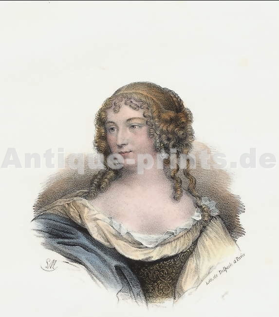 France. Lithographie de F. Delpech. 1842. Bon état. Aquarellée à la main. 8,5x9cm. Montée sous passe-partout.