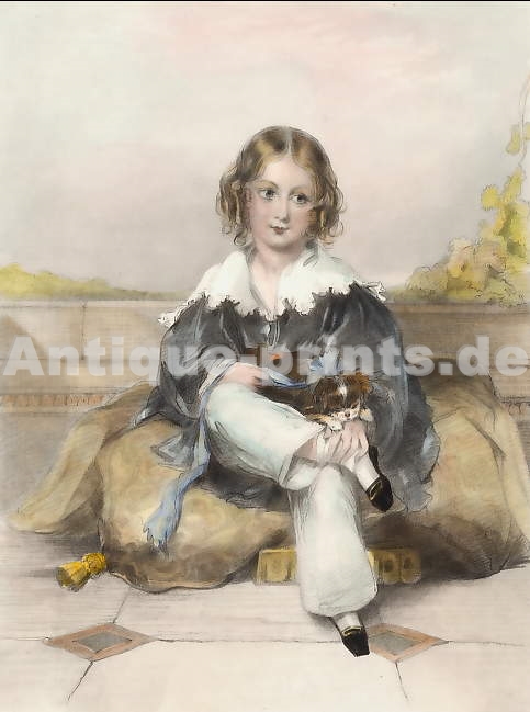 Royaume-Uni. Gravure sur acier, gravée par J. Thomson d´après Kendrick. 1825. Bon état. Bordure décorative. Aquarellée à la main. 11,5x9,5cm. Montée sous passe-partout.