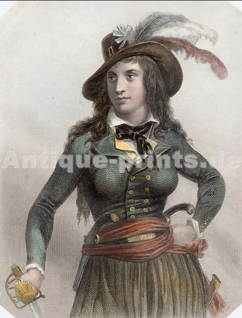 France. Eau-forte dessinée par Laffitte. 1807. Très bon état. Notice historique en francais sous l´image. Aquarellée à la main. 13x9cm. Montée sous passe-partout.